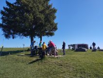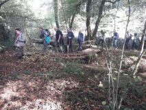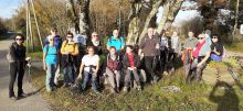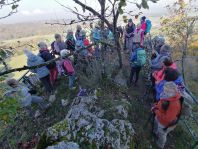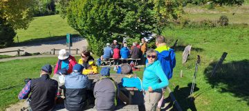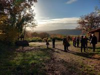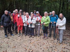 23 au départ pour un parcours de 11 Km et 300m de dénivelé. Entre Tarcenay et Foucherans, les prairies à l’ombre étaient couvertes de givre, au fond des creux, des restes de brume tentaient de survivre au soleil qui déjà faisait rougeoyer la forêt. Pas de doute, l’automne est bien là en ce beau mois d’octobre. Il est passé 9H00 quand le groupe quitte le parking de l’église. Ici et là, il y a des bonnets et des gants, il fait objectivement froid. Le charmant lavoir du village, si bien restauré jalonne notre chemin vers la chapelle St-Maximin. Plantée sur le haut de la côte elle se réchauffe au soleil. Les promesses du sacristain de la paroisse des trois Monts sont tenues, la porte est ouverte, nous y chanterons. Car c’est bien la mission que nous nous sommes donnés, marcher et chanter. Chanter, est une activité physique à part entière, nous en ferons une expérience singulière et collective. Je fais court, Jojo, Marie-Pierre et moi avons préparé 7 chants dont quelques canons, « simples », trois lieux couverts ont été réservé pour les travailler. Je peux dire que ça chante bien. Un brin de confiance en soi semble prendre forme… Une heure vingt plus tard lestés de deux musiques, une berceuse cosaque et un chant pour la Paix (sur un très beau texte de Romain Rolland) nous reprenons notre route vers le panorama du Gratteris. À peine plus loin que la chapelle, les villageois ont construit une caborde en pierre sèche, rappel patrimonial du passé viticole du lieu. La fin des travaux semble proche. Nous suivrons alors la crête qui domine le plateau de Mamirolle sur la via Francigena. Notre halte au panorama permet à Marie-Pierre de nous faire sonner onze heure pour les habitants du Gratteris qui n’ont ni coq (il est mort) ni clocher. Un canon connu de tous qui sonne juste du premier coup. La partie randonnée est lancée, nous suivrons encore la crête jusqu’aux faubourgs de Mamirolle, on entend nettement la quatre voix (heu non, la quatre voies). Un joli sentier à plat sur la courbe de niveau des 600m nous converti à la file indienne et nous évite un dénivelé supplémentaire. Les pauses au soleil réchauffent, mais c’est la dernière montée vers le sommet de la côte qui définitivement nous fait quitter la veste supplémentaire. Il est l’heure du casse-croûte. Un coin de bois troué par quelques rayons du soleil, quelques troncs, une souche feront l’a aire. Quelques « canons » ferons le tour du groupe merci Alain merci Jojo, décidément une journée sous le signe du canon. Pour faciliter la digestion et éclaircir les voix nous chantons une histoire farfelu de mouettes, de pigeons, de goélands et de goépiques. N’importe quoi ! Nous reprenons le chemin vers Trepot, nous basculons sur l’adret de la côte, la pente est douce, nous trainons les pieds dans les feuilles mortes comme les enfants. En bas de la pente, le sentier s’élargit bien à plat, la lumière est belle. Une nouvelle halte chant y est improvisée. « Quand la nuit se pose ». Je n’ose imaginer ce qu’auraient pensé d’autres randonneurs, s’ils nous avaient vu là, chanter en marchant en rond dans ce sous-bois. Toujours est-il que le plaisir de réussir ce nouveau chant enchante le groupe. Nous sommes vraiment canon ! c’est Véronique qui nous complimente (toujours le mot pour rire). Reprenons la marche vers l’église de Trepot. Un peu de macadam pour rejoindre le centre du village. Les portes sont grandes ouvertes, j’aurai l’occasion de remercier le sacristain. Le lieu à besoin d’être aéré, le salpêtre se dispute à l’encens ! Jojo et MariePierre nous font découvrir trois nouveaux chants. Un dynamique chant de marins de Lorient, puis un canon « musica, musica » plein de finesse musicale et enfin un « Pas d’Argentine », pas chaloupés qui nous fît tanguer un peu, quand il fallut tenter de le faire en canon. Nous lâchons cette froide église pour le soleil de fin d’après-midi, un chemin blanc droit vers le couchant pour rejoindre Foucherans. Là aussi les portes sont grandes ouvertes, d’ailleurs nous apercevrons la personne dévouée qui nous a ouvert, l’occasion de remercier. A-t-il apprécié nos chants ? C’est l’occasion d’une synthèse, nous reprenons et peaufinons trois chants. Essayions d’enregistrer. Indéniablement, nous progressons, c’est plus précis, c’est plus ample, on se détache peu à peu des partitions et des textes. Bien sûr il resterait encore des ajustements à faire. Mais on peut être fier, ça sonne bien. Une belle journée d’automne, un beau moment de partage et de culture. Une joie perceptible d’avoir eu la curiosité de tenter cette expérience. Tout le monde a donné et reçu en échange. C’est Chouette ! Dominique