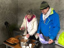 Ça avance bien, la galette de la veille (et son crémant) n’a pas laissé trop de trace dans les jambes, le premier raidillon en sortant de la « levée de Jules César » est franchi vaillamment. Le sentier est humide sans être trop gorgé d’eau, tout va bien le soleil pointe au sud-est il est temps d’enlever une couche. Le sentier est agréable, il redescend vers le village de Fourg que nous effleurons par son flanc sud pour rejoindre la D 441 qui va vers Liesle. Nous entrons dans la forêt et grimpons Le bois de la côte d’or. Le GR est dévié, on fait à contre cœur un peu de bitume ! Un fois la déviation terminée, nous regagnons la crête pour rejoindre le signal sommital 467 m. J’annonce : « on descend, on patauge, on remonte » Un bon coup de cul cependant doit être franchi pour terminer la montée. Quelques encablures après le signal sur le joli sentier en plateau nous nous posons au soleil pour prendre le repas. Les traditionnels partages rendent ces moments toujours très agréables. Nous sommes environ à mi-parcours.