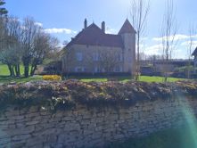 Le moment est venu de repartir, dans le sens de la descente vers Arc-et-senans. Patrick a perdu deux randonneurs, ce sont les farceurs Jojo et Joël qui par magie se sont retrouvés devant alors qu’ils devaient être derrière. L’énigme n’a toujours pas été levée. Nous avons donc le droit de poursuivre, au niveau de la grange Jouffroy. À ce niveau le GR a été dévié ! (par qui ?) Je décide de conserver l’itinéraire de la carte, grand bien nous a pris, en effet la tranchée rectiligne qui traverse le bois patrimonial privé de la Pérouse est magnifique. Planté de châtaigniers, original pour nos contrées. Une fois franchi la D17 (route du Val d’Amour) nous admirons le château de Roche-sur-Loue (voir ci-dessous). Nous contournons la grande scierie de Roche au bord de la Loue pour rejoindre le sentier des Gabelous et le site du bâtiment de graduation (ci-dessous) et enfin les salines royales. Les uns s’engouUrent dans le bar des Salines, les sept autres (chauffeurs) filent chercher les voitures. Tout le monde aura droit à boire un pot avant de se quitter.